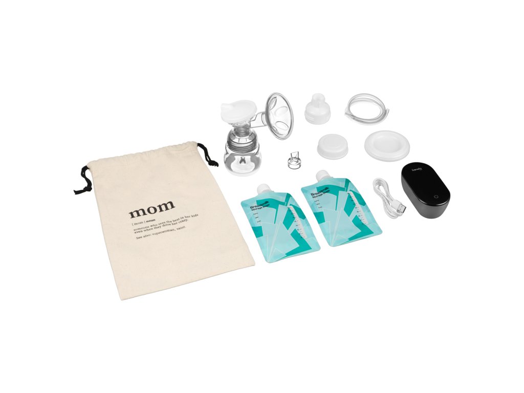 • Součástí sady je: láhev na mléko 180 ml, dudlík, 2 nádobky na mléko, nabíječka